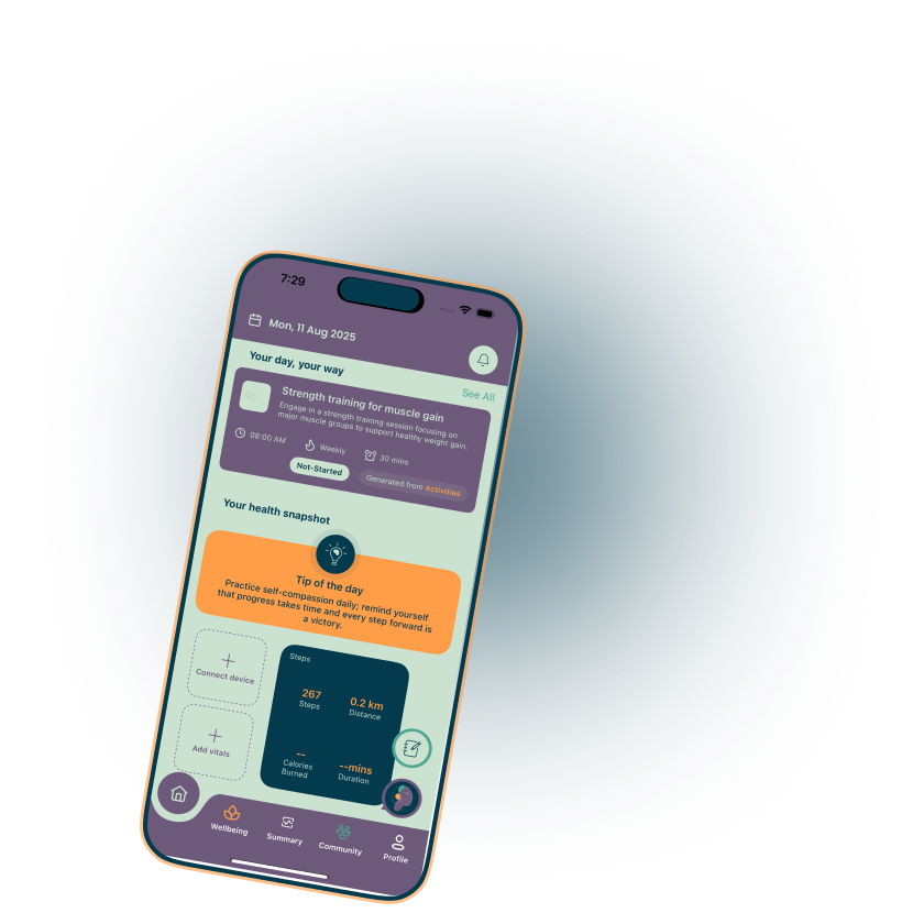 Self-care should be easy. Most tools do a slice; Zumlo connects the whole picture in one place—so support is simpler, every day.